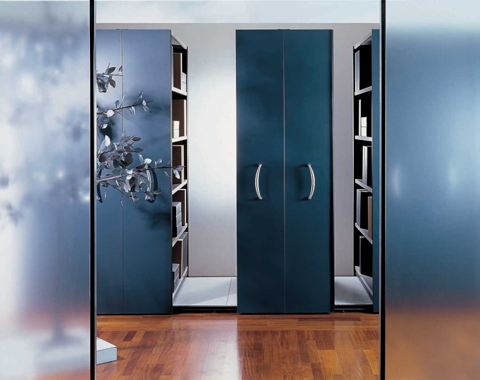 Rolloffice è un armadio compattabile che ottimizza lo spazio dedicato all’archiviazione in ufficio. Per il suo design accurato e la sua versatilità di utilizzo è facilmente integrabile con le più attuali linee di arredo. Tre le varianti cromatiche di serie: antracite, blu, grigio. Quattro i tipi di maniglia applicabili. Due le profondità e due le larghezze di serie, monofronte o bifronte, moltiplicabili all’infinito. Ogni modulo scorre silenziosamente acconto all’altro consentendo l’apertura di un corridoio operativo. La pedana completa di binari di scorrimento poggia direttamente a terra. I materiali impiegati e le lavorazioni sono di altissima qualità.