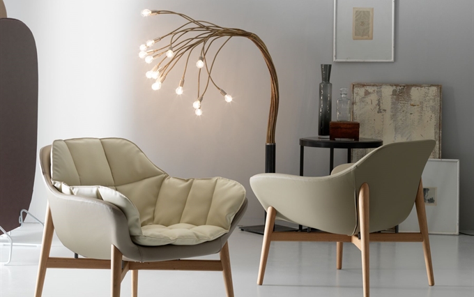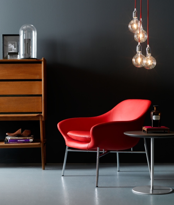 Linea di sedute lounge di design dalle forme morbide, ampie e stondate. Manta è proposta in diverse tipologie: su base a 4 gambe in metallo cromato o nero, base a traliccio, base in legno in 2 colori diversi, su base girevole a 4 razze. Disponibile anche un materassino trapuntato e un tavolino coordinato. Design: Marco Cocco.