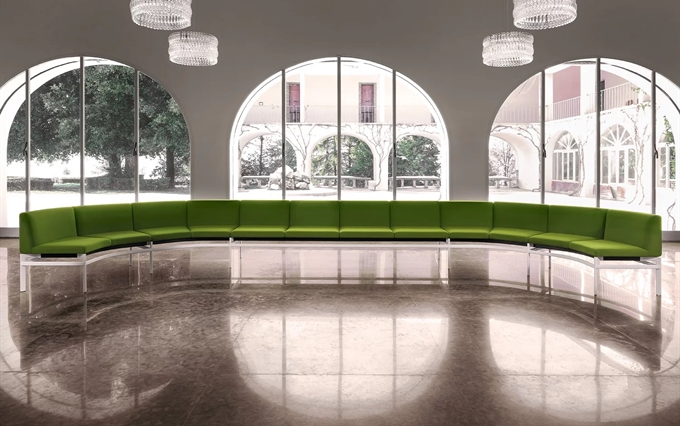 Design by Mario Ruiz. Ponte è il divanetto declinabile in svariate soluzioni, forme e colorazioni. L'imbottitura in schiumato freddo poggia su una base pulita ma resistente, che regala al prodotto intero raffinatezza e unicità. Le disposizioni in linea retta, curva, tonda, monofacciale o bifacciale esaltano la sua versatilità che si rispecchia anche nelle molteplici possibilità di utilizzo con l'aggiunta di soluzioni tecnologiche e combinazioni all'avanguardia.