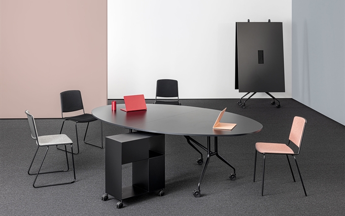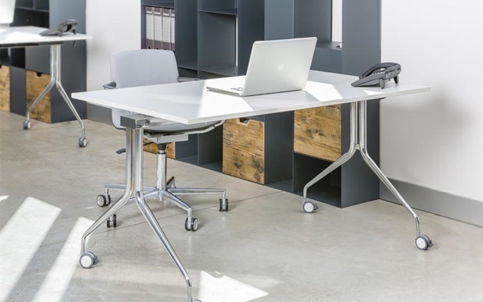 Tavolo salvaspazio richiudibile in soli 40 cm. Disponibile in un'ampia gamma di dimensioni. Il sistema di chiusura meccanico a libro rende questo tavolo facilmente manovrabile da una persona sola. Disponibile anche la versione chiudibile a ribaltamento del piano, facile da movimentare. Può essere usato per: conferenze, riunioni, meeting, lavori di gruppo e training donando agli spazi un'ampia flessibilità d'utilizzo.