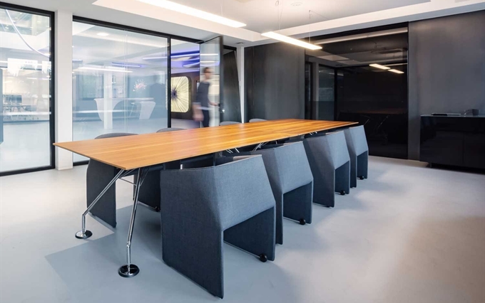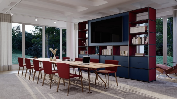 Dal piccolo meeting ai grandi tavoli da riunione componibili. Nomos, icona riconosciuta del design industriale, è un prodotto versatile ed estremamente robusto, capace di sfruttare al meglio le qualità della struttura in tubolare metallico e alluminio. Le finiture delle basi possono essere: cromo, bianco, grigio piombo. Per i piani ampia scelta tra: forte spessore, laccati, cristallo extra chiaro trasparente o retroverniciato, rovere o lati.