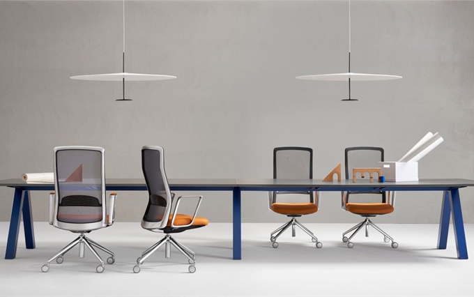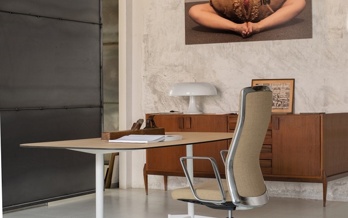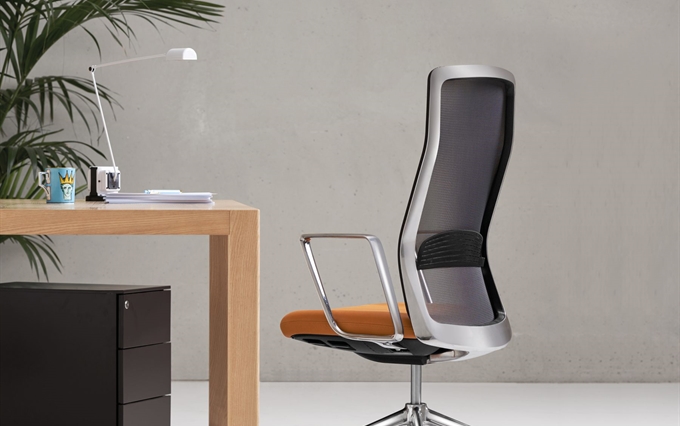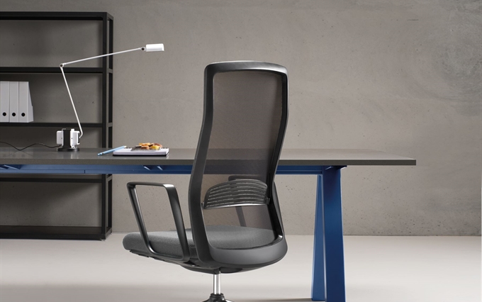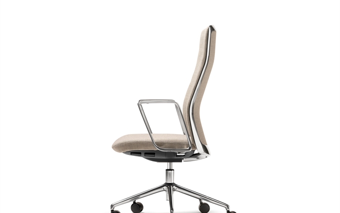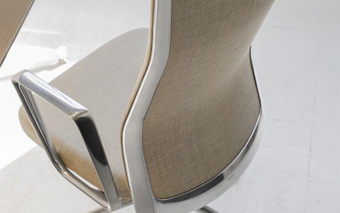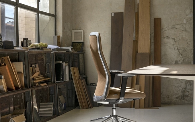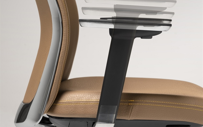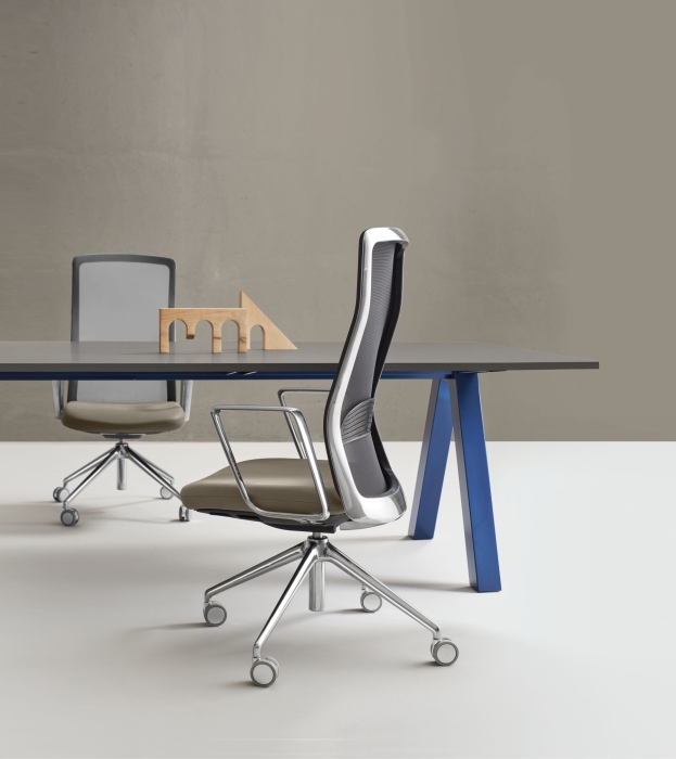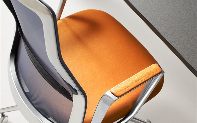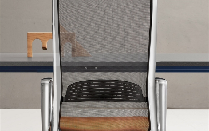 • Nuova seduta per ufficio dalla silhouette tridimensionale. Il supporto lombare regolabile in due versioni garantisce una perfetta ergonomia e il massimo comfort. E' disponibile sia con che senza braccioli fissi in alluminio. La tecnica del cromovelato consente l'applicazione di una vernice sopra la struttura cromata per ottenere le eleganti versioni: tortora satin, bronzo satin, bianco e nero. Design by: Alegre Design.