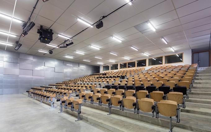 • Design: Orlandini. Seduta per collettività, spazi polifunzionali, aule didattiche e zone attesa, caratterizzata da elevate prestazioni tecniche e da grande comfort. E' prevista in diverse tipologie: fissa, su base girevole e su barra. La New Modulamm è disponibile con sedile e schienale in legno, in legno tinto oppure imbottita e rivestita in tessuto. Facilmente impilabili e trasportabili, le sedie si possono completare con un'ampia gamma di accessori: braccioli fissi o estraibili, attrezzabili con tavoletta di scrittura di diversi tipi, ganci di allineabilità, cestello.