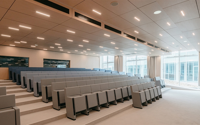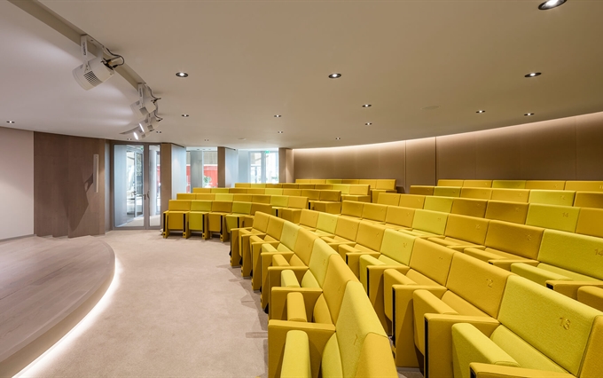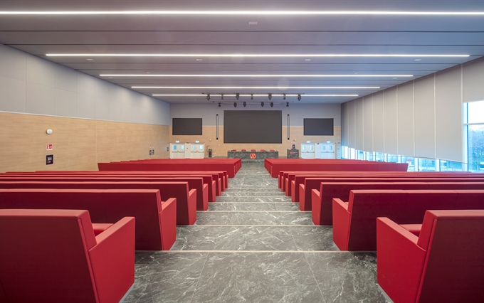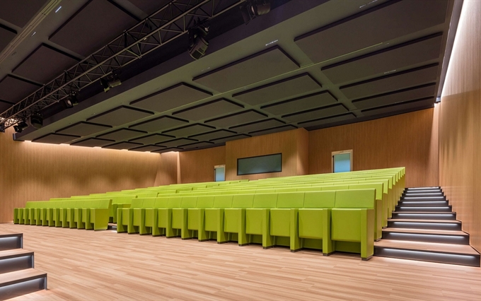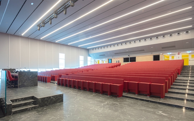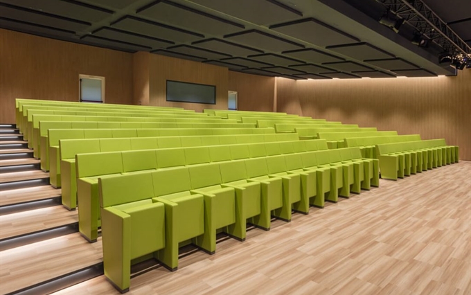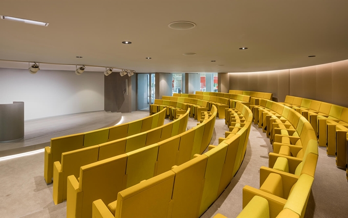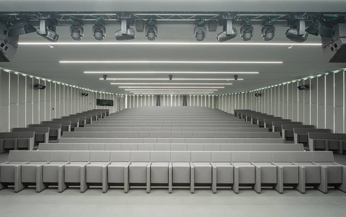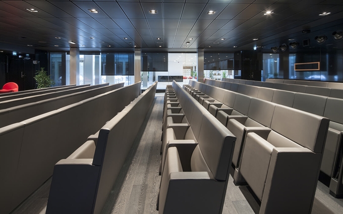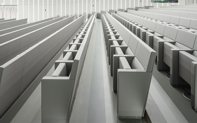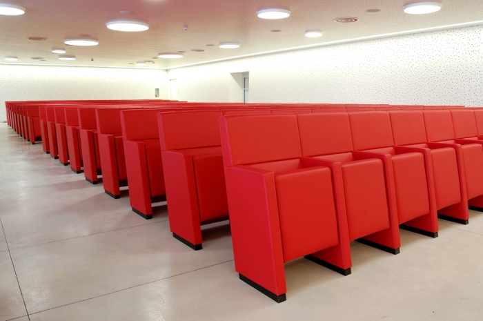 • Un'eleganza e un comfort inconfondibili. La pulizia del design, la coerenza stilistica e la ricerca minimalista caratterizzano la poltrona L213, che si distingue per la linearità e la compostezza dei suoi moduli, qualità che emergono sia da una vista frontale della fila di sedute, sia da una vista posteriore. L'inclinazione sedile-schienale definisce una forma plastico-dinamica che trasmette comodità e relax, rendendo la poltrona L213 una seduta ideale per assistere a lunghi spettacoli o conferenze.