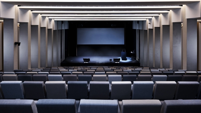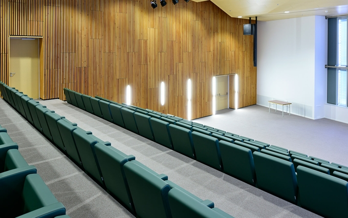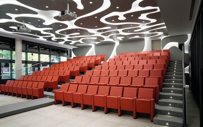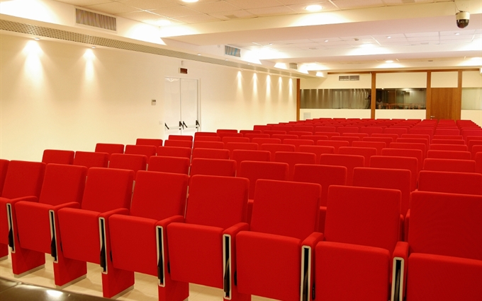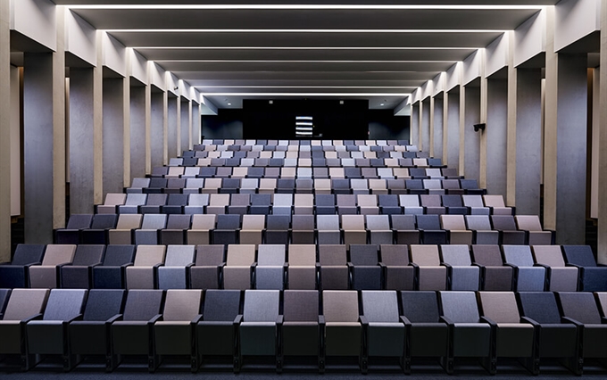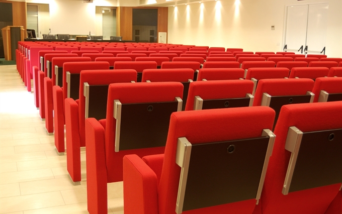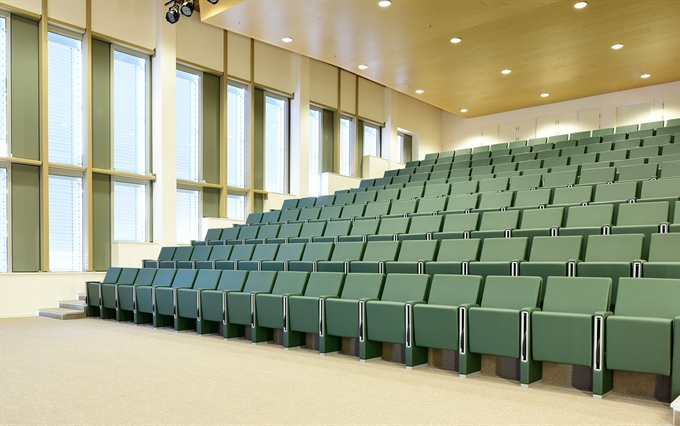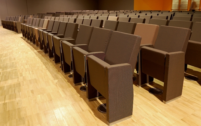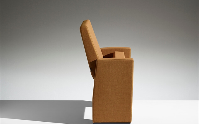 • Poltrona per conferenza dalle linee equilibrate ed essenziali che offre soluzioni personalizzate anche per allestimenti complessi. L'ancoraggio su piani orizzontali, su piani inclinati, o su gradoni è nascosto. Il fianco può essere attrezzato di tavoletta di scrittura con movimento antipanico a scomparsa. Lo schienale ed il sedile leggermente sagomati accolgono in modo confortevole, la compattezza di chiusura del sedile che rientra perfettamente all'interno del fianco consentono un agevole passaggio tra le file. M100 è disponibile anche nella versione "Large" con fiancate e schienale maggiorati.