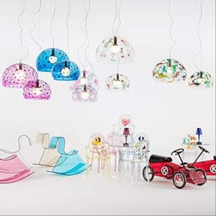 Lampada Kartell modello "Small Fl/y Kids" a sospensione colore trasparente con disegni, nuova a prezzo outlet. Ultimo pezzo.