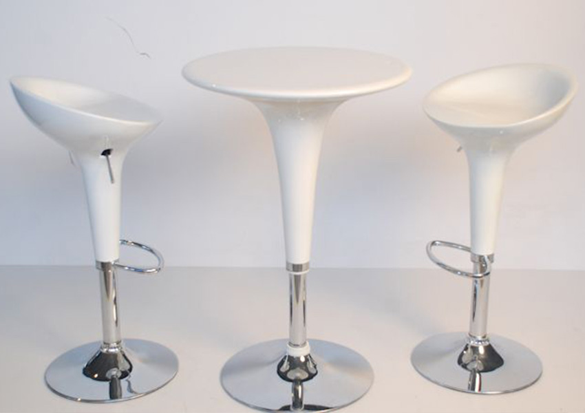 Gli sgabelli a noleggio includono i classici sgabelli in acciaio cromato, rivestiti in pelle o in tessuto, e prodotti più innovativi come gli sgabelli in ABS, alcuni dei quali fanno parte di una linea che comprende dei tavolini coordinati regolabili in altezza.