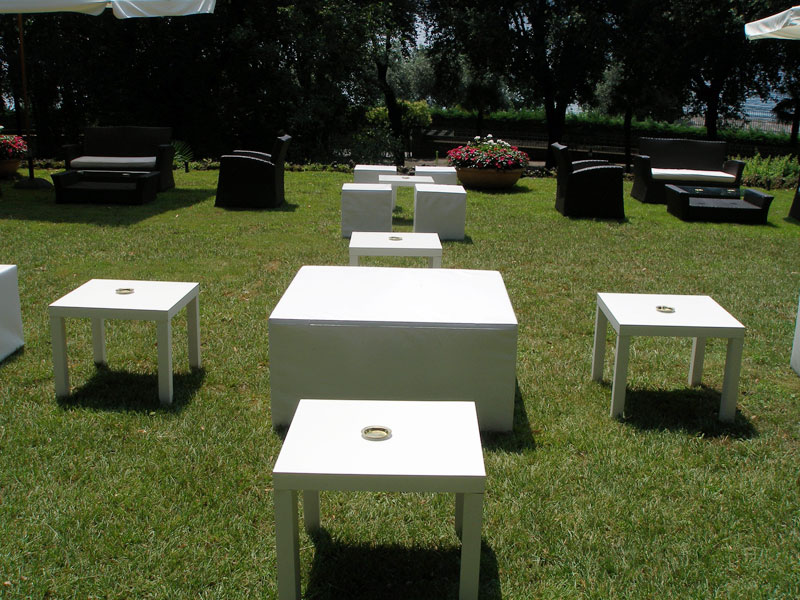La Roberto Catania S.r.l. noleggia tavoli e i tavolini con base in acciaio e ripiano in legno o cristallo retrolaccato. Sono disponibili, a richiesta, in qualsiasi dimensione, forma, finitura o colore.